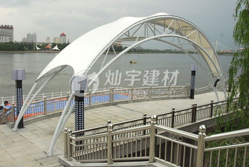 膜結構遮陽雨棚通俗采用玻璃纖維涂層織物或者聚酯涂層織物,